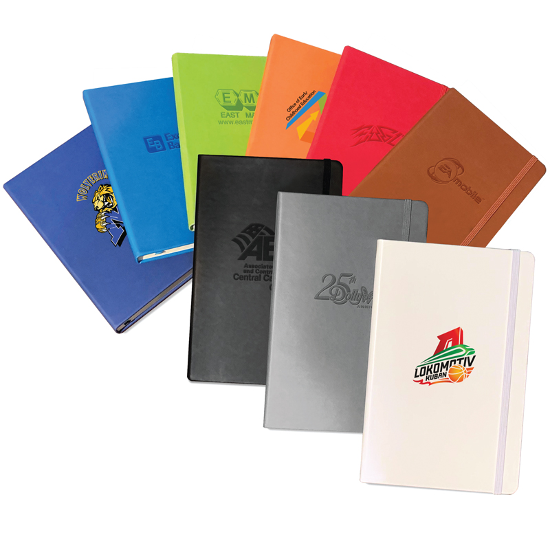 Our Classic Italian PU Leather Journal Book has a hard cover and an elastic closure to keep your important ideas safe! This classic design includes a ribbon page marker and 192 lined pages - perfect for jotting down notes at your next meeting. The cover comes in a variety of trendy colors to complement your company logo an includes an interior pocket for important papers. Sure to be a hit with your clients!