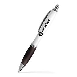 The Basset III Click Pen offers a sleek and modern look with its curvaceous white barrel, vibrant colored grip, and polished chrome/silver clip and trim.Designed for comfort and style, this medium-point black ink pen delivers a smooth writing experience, making it perfect for everyday use, corporate branding, and promotional giveaways.With its eye-catching design and premium feel, the Basset III Pen keeps your brand in hand and top of mind!.